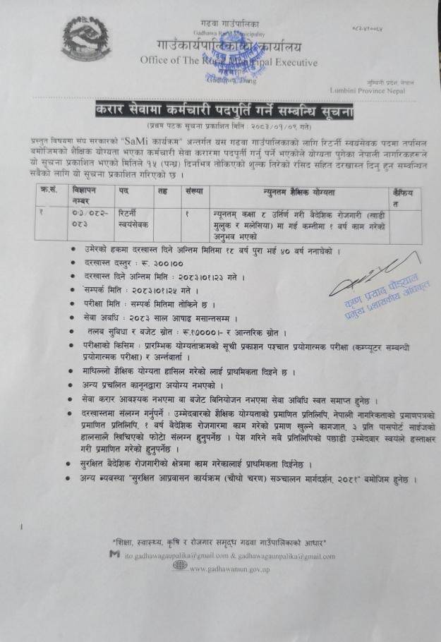 करार सेवामा कर्मचारी पदपूर्ति गर्ने सम्बन्धी सूचना।