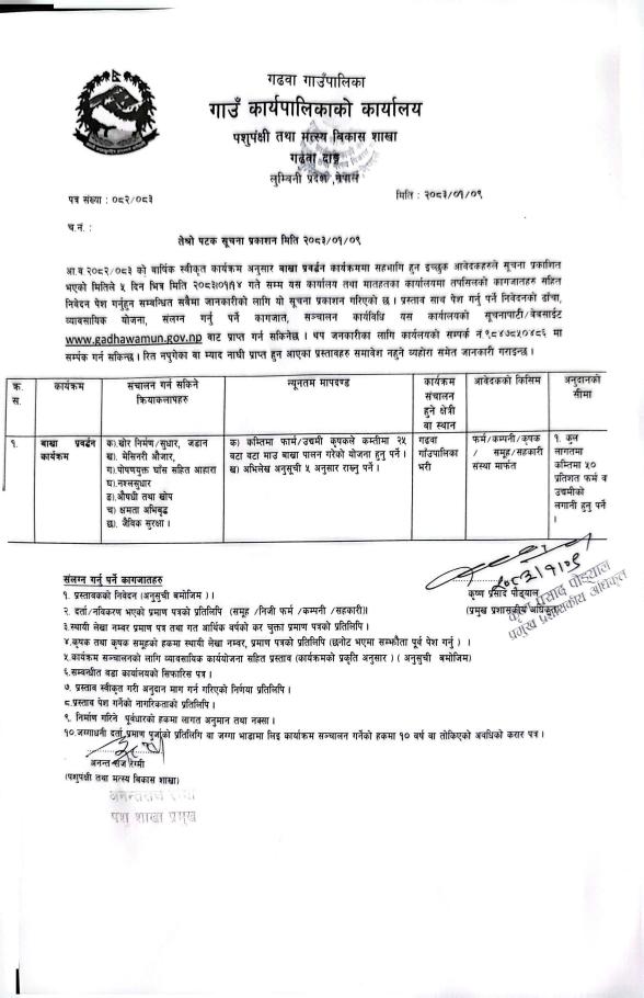 » बाख्रा प्रवर्द्धन कार्यक्रमको तेस्रो पटक प्रकाशित सूचना।